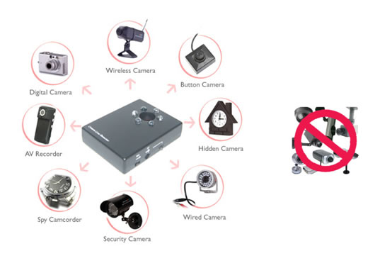 لنز  یاب فوق توانایی پیدا کردن و آشکار ساختن همه نوع دوربینهای فیلمبرداری و  عکاسی وایرلس و یا با سیم را